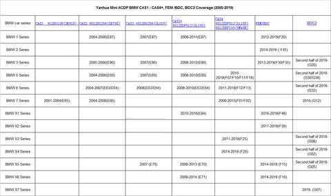YANHUA Mini ACDP BMW CAS1-CAS4+ FEM/BDC Supported List