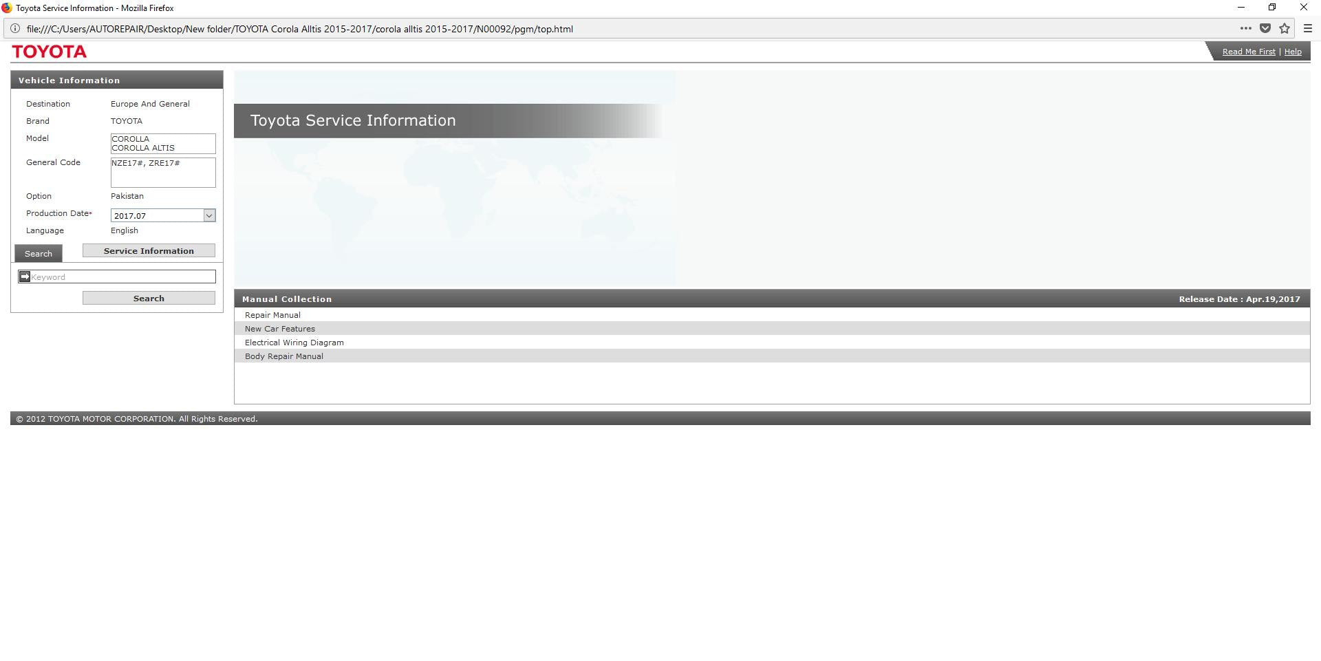 TOYOTA Corola Alltis 2015-2017 Workshop Manual